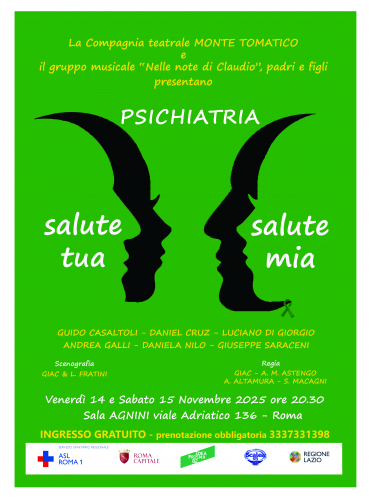 Venerdì 14 e sabato 15 Novembre dalle ore 20:30, presso la Sala Agnini (Viale Adriatico, 136), andrà in scena lo spettacolo teatrale “Psichiatria Salute Tua, Salute Mia”, promosso dalla Compagnia teatrale Monte Tomatico, in collaborazione con il gruppo musicale “Nelle note di Claudio”. La compagnia Teatrale del Centro…