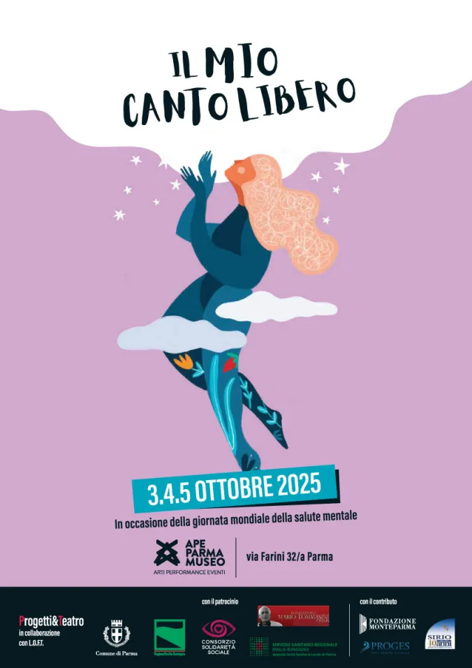 PARMA – Dopo il successo di pubblico e critica riscontrato lo scorso anno, riprende ad Ape Parma Museo la seconda edizione della rassegna “Il mio canto libero”, realizzata dall’associazione Progetti&Teatro aps, in collaborazione con L.O.F.T. Libera Organizzazione Forme Teatrali, con il contributo di Fondazione Monteparma, Sirio cooperativa sociale, Proges cooperativa sociale, e con il patrocinio del Comune di Parma, Regione Emilia Romagna, Fondazione Mario Tommasini, Consorzio Solidarietà Sociale e Ausl Parma.